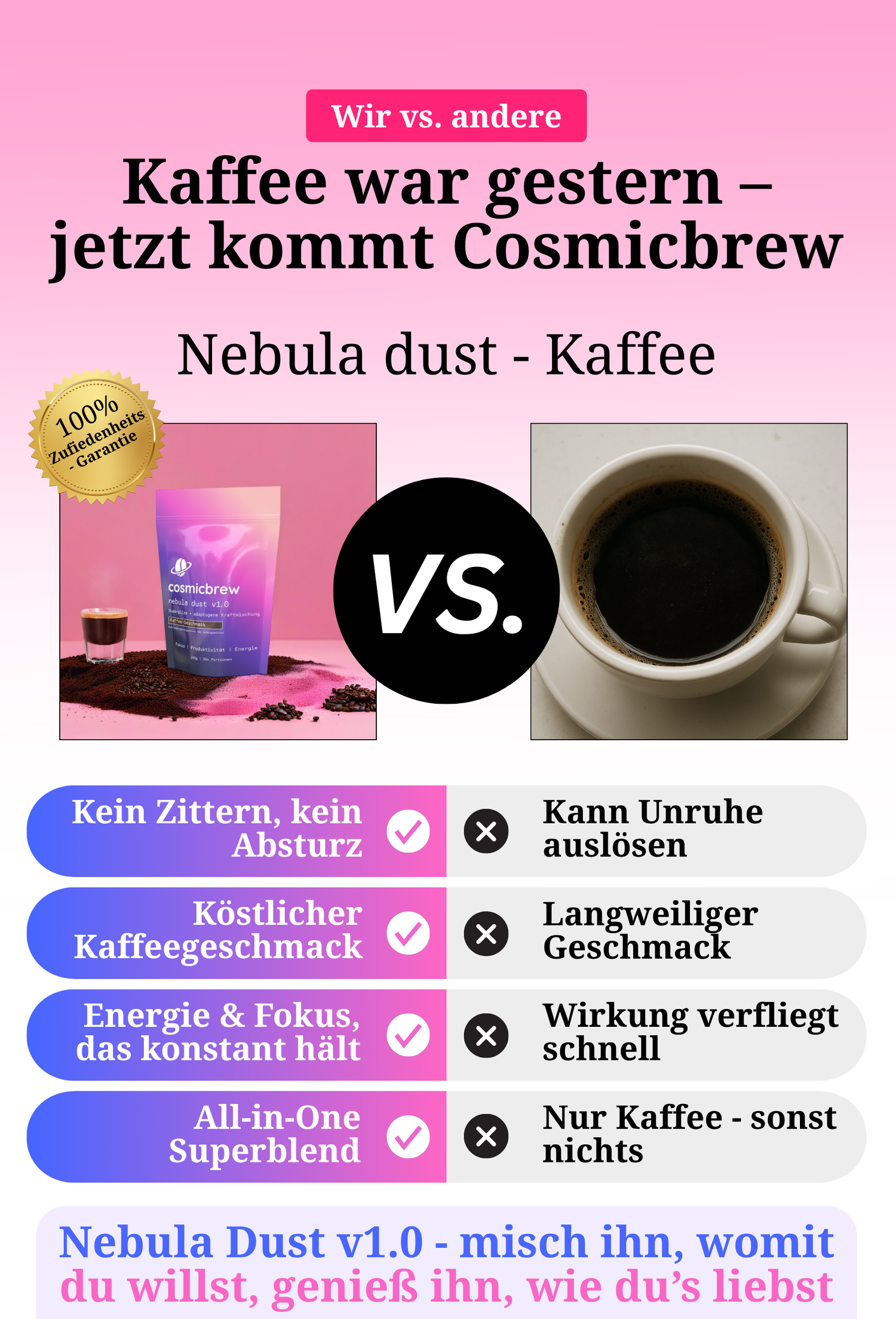 Unser Nebula Dust ist ein köstliches, leicht schokoladig-kaffeeartiges Pulver, perfekt für deine tägliche Routine.