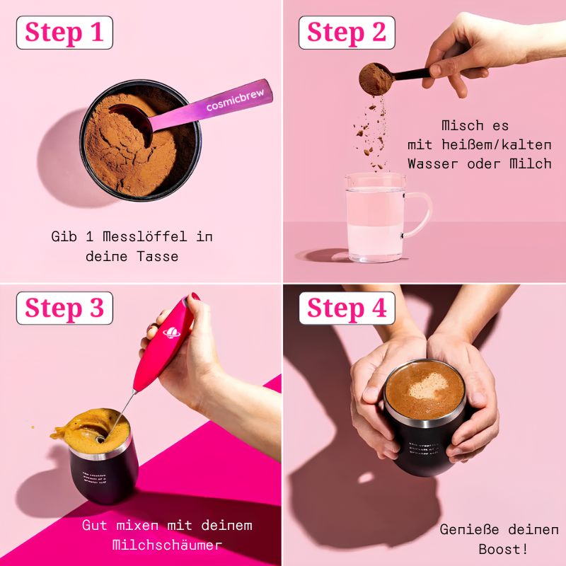 Das vielseitige Pulver kann wie ein Kaffee genossen oder mit fast allem kombiniert werden, was du magst.