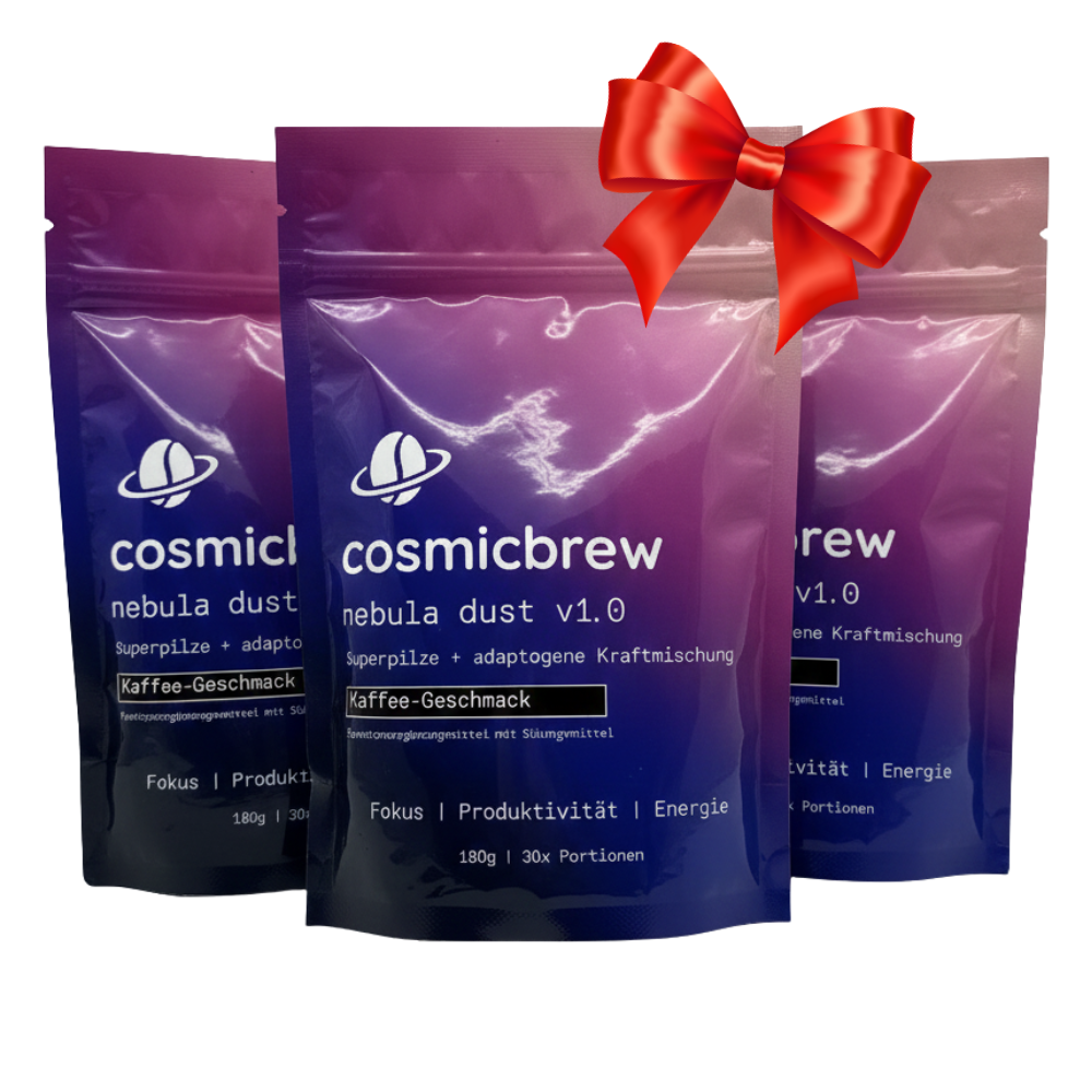 Nebula Dust enthält eine sorgfältig abgestimmte Mischung aus funktionellen Pilzen, Adaptogenen und Vitaminen – entwickelt, um Körper und Geist in Balance zu bringen. Hier ein Überblick über die wichtigsten Inhaltsstoffe: